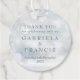 Mit eleganter, staubblauer Typografie und zarten Schneeflocken, die über Ihre personalisierten Hochzeitsdetails auf einem Winterfrosthintergrund fallen. Entwickelt von Thisisnotme©
