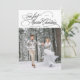 Retro und elegante Urlaubskarte für die Neuvermählten, die gemeinsam als Ehemann und Ehefrau ihr erstes Weihnachtsfest feiern, mit einem Text, der "unsere ersten Verheirateten Weihnachten" im Vintagen kalligraphischen Schriftart sagt.
