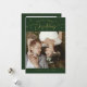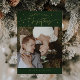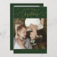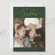 Minimale und elegante Urlaubskarte für die Neuvermählten, die gemeinsam als Ehemann und Ehefrau ihr erstes Weihnachtsfest feiern, mit einem Text, der "unsere ersten verheirateten Weihnachten" mit Punkten und Herzen sagt. Der Hintergrund ist grün.