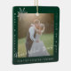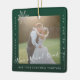 Minimalistische moderne fröhliche und verheiratete neue Mr. und Mrs. wedding neuvermählten Paar Foto doppelseitigen personalisierten Keepsake grünen Weihnachtsbaum-Schmuck Vorlage mit einem trendigen handgeschriebenen Signatur Stil Imitate silbergraue Kalligraphie Skript und eine Schneeflocke. ++++++++++ Einfach auf beiden Seiten mit Text und Bildern personalisieren.