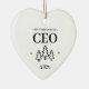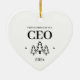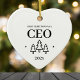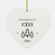 Erste Weihnachten als CEO Herzverzierung für einen Unternehmer oder Chef. Elegante Porzellan Keramik Urlaubsornamente in Weiß mit schwarzer Schrift. Mit Weihnachtsbäumen und Sternen.