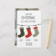 Weihnachten als eine Familie von drei mit bunten Weihnachtssocken mit dem Namen der Familienmitglieder. Es ist eine großartige Geschenkidee, sich an schöne Familienmomente zu erinnern. Sie können die Hintergrundfarbe leicht ändern. Es ist einfach, es anzupassen, indem man Namen/Datum/Text usw. ändert.