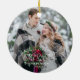 Stilvolle Weihnachtsschmuck für ein frisch vermähltes Paar. Der Typografie-Text sagt: "Unser erstes Weihnachten als Herr. & Mrs." Passen Sie dieses Produkt an, indem Sie Ihr Hochzeitsbild und Ihren Familiennamen hinzufügen.
