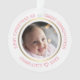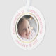 Dieses moderne personalisierte Weihnachtsschmuck besticht durch ein elegantes Imitat-Golddesign. Personalisieren Sie den Namen, das Jahr und das Foto. Es ist zweiseitig. Diese Vorlage funktioniert am besten mit Fotos im Landschaftsformat, wobei das Baby in der Mitte liegt.