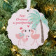 NewParkLane - Weihnachts-Ornament-Karte für neue Großeltern, mit einer tropischen Szene mit zwei niedlichen rosa Flamingos mit einer Weihnachtsmannmütze und einem Baby-Flamingo, und einer dekorierten Palme. Mit Zitat: "Erste Weihnachten als Großeltern" in Himbeerrosa. Alle Textstile, Farben und Größen können an Ihre Bedürfnisse angepasst werden. Eine großartige Weihnachtsschmuckkarte für die ersten Eltern mit einem Neugeborenen, um ihren Eltern zu geben! Karo diese Kollektion für passende Artikel aus! Haben Sie spezielle persönliche Designwünsche? Kontaktieren Sie mich bitte!