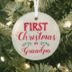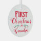 Dieser Weihnachtsbaumschmuck ist perfekt, um Ihre ersten Weihnachten als Großvater zu feiern. Der Titel lautet "Erste Weihnachten als Großvater" in der modernen roten Schrift auf weißem Hintergrund.