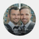 Erinnern Sie sich an das erste Weihnachtsfest Ihrer Ehe mit diesem schönen modernen Sake-Ornament. Der weiße Text lautet "Unser erstes Weihnachten als Mr. & Mr." mit den Worten "Mr. & Mr." in eleganter Handschrift mit Schnörkeln vor und nach. Ersetzen Sie das Beispielbild durch Ihr Lieblings-Foto, und fügen Sie Ihren Nachnamen und das Jahr hinzu. Ein Filter mit dunklem Farbverlauf hilft, den Text-Pop zu erzeugen.