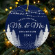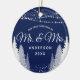 Erstweihnachtliche Herrin & Mrs. Navy Winter String Lights Keramik Ornament. Dieses Design bietet schöne Saitenleuchten, rustikale Winterkiefern und Schnee!