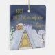 Erste Weihnachten in neuen Zuhause Feiertagsschmuck - die Sie für Single, Paare und Familien bearbeiten und mit dem Jahr und Ihrer neuen Adresse personalisieren können. Fun Design mit gemütlichem Hausdach gegen den Mitternachtshimmel mit santa Fußspuren im Schnee und ein paar Geschenke bereit, um den Schornstein herunter zu kommen.