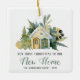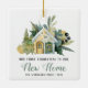 Feiern Sie Ihr erstes Weihnachtsfest in Ihrer neuen Zuhause mit diesem niedlichen Sake-Ornament, das mit einem Aquarellbild einer gemütlichen, gelb-grünen Hütte inmitten von Winterpflanzen und Beeren besticht. Der Text lautet "Unser erstes Weihnachten in unserer neuen Zuhause", mit den Worten "Neue Zuhause" in grüner Kalligrafie und dem restlichen Text in Holzkohle grau. Personalisieren Sie es mit dem Namen Ihrer Familie und dem Jahr.