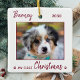 Mein erstes Weihnachten! Dekorieren Sie Ihren Baum oder schicken Sie ein besonderes Geschenk mit diesem super niedlichen personalisierten Haustier Foto Urlaubssornament. Fügen Sie das Foto Ihres Hundes hinzu und personalisieren Sie es mit Namen und Jahr. Die Einrichtung ist zweiseitig, Sie können verschiedene Fotos machen. COPYRIGHT © 2020 Judy Burrows, Black Dog Art - Alle Rechte vorbehalten. Erste Weihnachten Niedliche Welpe - Einfache Hunde Foto Keramik Ornament