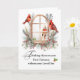 Diese zarte Weihnachtskarte zeigt Kardinäle in einem rustikalen Gewölbefenster, das mit immergrünen und heiligen Beeren bestickt ist. Für ein erstes Weihnachtsfest ohne Lieben bietet es sanfte Unterstützung, Wärme und Mitgefühl in einer friedlichen Winterlandschaft.