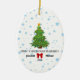 Erste Weihnachten Verheiratet 2024 Custom Couple Keramik Ornament. Feiern Sie ein paar Weihnachten als Neuvermählte mit diesem wunderschön gestalteten Ornament mit einem festlichen Weihnachtsbaum. Der Ziergegenstand ist mit zarten Schneeflocken, einem roten Band und den personalisierten Namen des Ehepaares, zusammen mit dem Jahr 2024, geschmückt. Dieser Sake ist perfekt für frisch verheiratete Paare geeignet, um die Freude der ersten Urlaubssaison zusammen zu erleben. Passen Sie dieses Ornament mit Ihren Namen für eine persönliche und unvergessliche Touch Ihrer Feriendekoration an. Wählen Sie den Stil (rund, quadratisch, oval, stern oder herzenförmig) aus dem Menü.