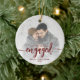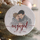 Erste Weihnachten Verlobtes Foto Rotes Skript Keramik Ornament