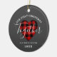 First Christmas Together Rustic Heart Personalisierte Keramik Ornament ist eine großartige Geschenkidee für ein Paar. Beide Seiten des Ornaments sind mit dunkelgrauem Hintergrund und einem karierten roten Büffel in der Mitte gestaltet. Der Text ist "unser erstes Weihnachtsfest zusammen" in der angesagten handgeschriebenen Schriftzeichen-Schrift, gefolgt von den Namen der Paare und dem benutzerdefinierten Jahr.