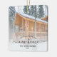 Erinnern Sie sich an Ihr erstes Weihnachtsfest in Ihrer neuen Zuhause mit diesem schönen modernen Sake-Ornament. Der schwarze Text lautet "Erste Weihnachten in unserer neuen Zuhause", mit den Worten "Neue Zuhause" in elegantem Schriftzeichen mit Schnörkeln vor und nach. Ersetzen Sie das Beispielbild durch ein Foto Ihres neuen Hauses und fügen Sie den Nachnamen Ihrer Familie hinzu. Mithilfe eines Farbverlaufsefilters wird der Pop des Textes erzeugt.