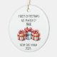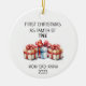 Erstweihnachtsfest als Bauernfamilie präsentiert Keramik Ornament Der perfekte erste Weihnachtskuchen für die erste Weihnachtsfeier Ihrer Familie mit Ihrem neuen Baby. Passen Sie Ihren Schmuck mit Ihren Familiennamen und Datum an.