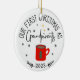 Erinnern Sie sich an den außergewöhnlichen Meilenstein, Großeltern zu werden und schätzen Sie Ihre ersten Weihnachten als Oma und Großvater mit unserem "Erstes Weihnachtsfest als Großeltern" Coffee Cup Keramik Ornament. Dieses personalisierte Ornament ist eine wunderschöne Möglichkeit, um die Liebe, die und die Ferienzeit zu feiern und dabei Ihr eigenes Foto mit Liebe und Liebe hinzuzufügen.