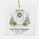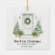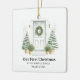 Eine ruhige, runde Keramik mit einer weichen Aquarelltür mit Kranz, Topfverzierungen und warmen Laternen. Die Überschrift des Gewölbes lautet "ERSTE CHRISTMAS AT", mit den nachfolgenden Zeilen für Ihre Straße, Namen und das Jahr. Die sanfte Salbei-grüne Palette Anzug jeden Baum und macht einen durchdachten First-Zuhause-Sake oder ein Hauswärmeschenk. Aktualisieren Sie die Adresse, fügen Sie Namen hinzu und Set das Jahr für ein zeitloses Stück, das Sie jeden Dezember hängen.