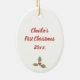 Feiern Sie den ersten Weihnachtsurlaub Ihres Babys mit seinem Foto auf einem hübschen Ornament! Ein botanischer Kranz in sanften Pastelltönen auf einem knackigen, weißen Hintergrund umrahmt Ihr Bild. Das Gegenteil hat den Namen des Babys, die Worte "Erste Weihnachten" und das Jahr, plus einen heiligen Sprig. Es ist einfach, dieses Ornament zu personalisieren; die Text- und Bildvorlagen zu verwenden und das Menü zu bearbeiten. Ideal, um an die Weihnachtszeit jedes Kindes zu erinnern; einfach das Jahr bearbeiten, den Namen ändern und "zuerst" in eine beliebige Zahl ändern. Whimsical, originell, einzigartig Kunstwerk & Design von Tuzi Williams.