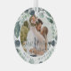 Aquarellgrüne Blätter Eukalyptusgrün Blätter Kranz und eine klassische modische handgeschriebene Stil Kalligraphie Skript, die ein schönes modernes Paar Foto personalisierten Keepake Weihnachtsbaum-Schmuck Vorlage. ++++++++++++ Einfach das Foto durch das eigene ersetzen! Sie können den Skripttext mit Ihrem Text ändern.