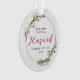 Feiern Sie Ihr erstes Weihnachtsfest verheiratet mit diesem eleganten, minimalistischen Kranz-Foto-Ornament. Der Kranz hat zarte rote Beeren mit grünen Blattakzenten. Einfach mit Ihren Namen und Jahr auf der Vorderseite und Ihr Foto auf der Rückseite anpassen.