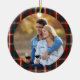 Erste Weihnachten verlobte Foto-Ornament, personalisiert mit einem Foto, Namen und das Jahr. Das Design ist doppelseitig und weist karierte Rahmen mit Handschrift auf. Die Fotovorlage zeigt Ihr Bild als runde Form an und auf der anderen Seite steht "unsere ersten Weihnachten verlobt ... [Nachname und Jahr]". Wenn Sie Probleme mit der Platzierung haben, schneiden Sie Ihr Bild vor dem Hochladen auf ein Quadrat.