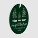 Moderne elegante Kalligraphie-Schrift, Aquarellkiefer-Bäume, Grün Unsere ersten Weihnachten als Großeltern-Ornament - Foto Back