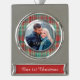 Dieses Urlaubssake-Ornament zeigt Ihr eigenes Foto in einem karierten, weihnachtrot und grün gestalteten Rahmen, der innen Imitate silberne Futter hat. Der untere Teil hat Ihren eigenen Text in Weiß auf einem roten Hintergrund; lassen Sie ihn sagen, was Sie wollen! Ein elegantes und festliches Sake-Geschenk für Neuvermählte oder ein Paar.