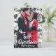 Personalisieren Sie diese schönen und modernen weißen, schwarzen Weihnachten mit FOTO Grußkarten. Schneeflocken, schneeweiß, grau, silber Hintergrund auf der Rückseite. Die Aufzeichnung kann geändert werden. Frohe Weihnachten oder glückliche Feiertage. Editable Text und Bild und Namen - ändern Sie Schriftart, Größe, Farbe. Perfekte Urlaubskarten für das erste verheiratete oder verlobte Paar!