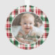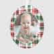 Erste Weihnachtsschrift Klassische rustikale Karierte Muster. Niedlich Baby's First Christmas Foto Ornament bietet ein rustikales Muster in klassischen, traditionellen Weihnachtsfarben von rot, grün. Editieren Sie in einer Minute, laden Sie Ihr Lieblings-Foto hoch und geben Sie Ihre Daten ein. Ideal für Ihr neues Kleines!