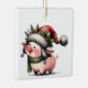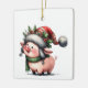 Whimsikale Abbildung eines niedlichen Schweins in einer Weihnachtsmannmütze gedruckt auf einer Keramik Ornament Gedenken an die erste Weihnachtszeit des Babys. Text auf der Rückseite kann geändert werden. AI unterstützte Grafik, die mit kommerziellem Einsatz erworben wurde. Kunstwerk: RedHeronLighthouse