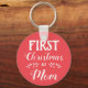 Dieser rote Schlüsselanhänger eignet sich hervorragend für personalisierte Weihnachtsausstattungen. Es steht "Erste Weihnachten als Mama" in einem weißen, modernen Schriftart. Für weitere Anpassungen oder andere passende Artikel, kontaktieren Sie mich bitte.