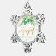 Für Ihre ersten Weihnachten verlobt, dieses elegante Urlaubsornament verfügt über einen Anstrich von heilig in Aquarell bemalt von Imitaten goldenen Glitzer. Unten liest es in Imitaten goldene Glitzer Schrift Typografie "Unser erstes Weihnachten verlobt" mit Ihren Vornamen und Jahr zu personalisieren. Designed by artist ©Susan Coffey.