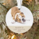 Niedliche 1. Welpe Weihnachtsschmuck Foto. Sie können es mit Ihrem Begleiter Foto, Name, Text und Jahr personalisieren. Legen Sie Ihr Lieblings-Welpe-Foto ein. Sie können dieses maßgeschneiderte Ornament für jedes Haustier verwenden. Die Einrichtung ist in sanften Beige gehalten, die Rückseite ist beige mit feinen weißen Streifen. Guter Sake für Sie oder ein Geschenk für Ihre Familie und Freunde.