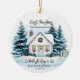 Dieses niedliche Ornament "ERSTE CHRISTMAS IN UNSERER NEUEN ZUHAUSE" zeigt eine Aquarellzeichnung eines gemütlichen Weißen Hauses und Pinienbäume, die von einer weichen Schneedecke bedeckt sind. Die ruhige Winterlandschaft fügt eine Touch von Wärme und Nostalgie hinzu und ist somit der ideale Ort, um den ersten Familienurlaub auf der neuen Zuhause zu feiern. Mit seinem charmanten Design und seiner festlichen Stimmung wird dieses Ornament einen Weihnachtsbaum wunderschön schmücken und Jahr für Jahr als wertvolle Erinnerung dieses besonderen Meilensteins dienen. Klicken Sie auf "Diese Vorlage personalisieren", um die Nachricht und die Namen anzupassen. Wenn Sie die Schriftart, die Platzierungen und die Farbgebung der Texte ändern möchten, gehen Sie zu "Bearbeiten mit dem Entwurfstool".