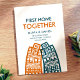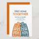 Erste Zuhause zusammen neue Adressenankündigung mit Cartoon Retro-Stil Stadt Gebäude. Bitte Karo der passenden Kollektion für KOORDINIERENDE GEGENSTÄNDE. Originale Kunstwerke von PUPSIKU STUDIO. 100% einzigartige Produkte.