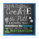 Unsere Fliese Create the Path Keramik weist ein Textdesign mit verschiedenen Schriftart auf einem schwarzen Chalkboard-Look Hintergrund auf, mit einem Pop Blau für Farbe mit einem blauen, passenden Rahmen! Im Text steht: "Folgt nicht...Erstellen Sie den Pfad, wissend, dass die Reise manchmal besser ist als das Ziel"!
