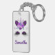 Erstellen Sie einen benutzerdefinierten Einhorn-Schlüsselanhänger. Fügen Sie einen Namen hinzu. Lila Einhorn mit lila Blume.