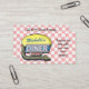Erstellen Sie Ihre eigenen Visitenkarten im Stil der 1950er Jahre mit dieser einfachen Vorlage. Dieses coole Retro-Design hat einen leicht bedrückten, rosa-weiß karierten Hintergrund mit einem Schild, auf dem "DINER" und "OPEN" in Neon stehen, sodass Sie Ihren eigenen Namen hinzufügen können. Fügen Sie daneben Ihren Slogan oder einen anderen Text hinzu - und fügen Sie weitere Geschäftsdetails auf der Rückseite ein. Die Visitenkarten sind in Rosa, Weiß, Schwarz, Blau, Gelb, Grau und Rot gehalten. Füllen Sie einfach die DIY-Vorlage oder "Anpassen" aus, wenn Sie Textfarben und Schriftart verändern, verändern oder verändern möchten.