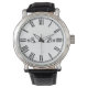 Uhr, Klassische Damenuhr mit schwarzen Lederarmband