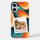 Erstellen Sie Ihr eigenes Foto Foto iPhone Gehäuse. Fügen Sie einfach eines Ihrer Lieblingsfotos und personalisierten Text in Vintager Schrift Typografie auf einem bunten Retro Streifen Hintergrund.