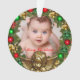 Personalisieren Sie ein Baby-Foto-Ornament mit dem Foto Ihres niedlichen zauberhaften kleinen Engels. Eine verzierte Grenze mit roten und grünen Bauern und einem goldenen Engel am unteren Ende. Fügen Sie einen Namen anstelle von Grüße, wenn gewünscht. Erstellen Sie mit jedem Foto Ihr eigenes lustiges Ornament und nutzen Sie den Sake für zukünftige Weihnachtsfeiertage.