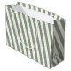 Erstellen Sie Ihren eigenen Sage Grün Weiß Streifen Muster Große Geschenktasche. Machen Sie jedes Geschenk mit dieser individuell gestaltbaren, grün und weiß gestreiften großen Geschenktasche ganz besonders. Diese Tasche ist ideal für Geburtstage, Hochzeiten, Feiertage oder besondere Anlässe und lasse Ihnen, Ihre eigenen Texte, Initialen oder kleine Grafiken für eine personalisierte Touch hinzuzufügen. Es ist stabil und stilvoll und eignet sich ideal, um größere Geschenke zu halten und dabei einen unvergesslichen Eindruck zu hinterlassen. Features: Modernes, grün und weiß gestreiftes Muster Vollständig anpassbar - Text, Initialen oder Grafik Hochwertiger, haltbarer Geschenksack für größere Geschenke Perfekt für Geburtstage, Hochzeiten, Feiertage oder Events macht eine stilvolle und personalisierte Geschenkpräsentation Erhöhen Sie Ihre Geschenke mit einem großen Geschenksack von Ihnen entworfen.