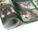 Wunderschöne Fotos von niedlichen Kätzchen und Katzen werden durch dunkelgrüne Ränder getrennt. Oder um es zu personalisieren, ersetzen Sie die 5 Beispielvorlagen mit Ihren eigenen Fotos (Haustiere, Familie, Freunde, Kunstwerke...) in der Sidebar, um Ihre eigene Foto-Collage zu erstellen. Die Bilder, die Sie hinzufügen, werden automatisch in einem Raster angezeigt, das sich auf einem dunkelgrünen Hintergrund wiederholt.