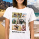 Erstellen Sie Ihren eigenen individuellen Foto-T - Shirt mit 6 Ihrer Lieblingsfotos in einem einfachen Foto-Collage-Raster zusammen mit personalisiertem Text in moderner Typografie.