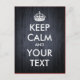 Vollständig anpassbare Postkarte "Keep Calm and Carry On" basierend auf dem britischen Poster des 2. Weltkriegs auf einem dunkelalten Holzhintergrund! Sie können den Text ganz einfach ändern, indem Sie einen eigenen Text in die Textfelder eingeben usw. Sie können sogar eigene Bilder hinzufügen oder das vorhandene Kronenbild verändern. Schaffen Sie sich kreativ und drücken Sie sich aus! :-)