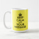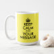 Ändern Sie das Textdesign auf diesem klassischen Vintagen Poster "Keep Calm and Carry On" mit gelber Hintergrundfarbe. Schwarze Krone und Blocktext. Erstellen Sie eine parody-Tasse mit diesem klassischen Poster-Design.