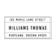 Erstellen Sie Rücksendeadresse Gummi StampErstellen Sie Ihre eigene Briefmarke aus Gummi Rücksendeadresse , es gibt einen Platz, um die Gummi Briefmarke mit Ihrem eigenen Text zu gestalten. Drücken Sie einfach die Schaltfläche Anpassen, um den Text zu bearbeiten, oder die Schaltfläche Anpassen, um den Schriftart zu ändern.