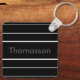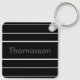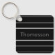 Dieses moderne Monogramm verleiht Ihrem Schlüsselanhänger ein einzigartiges und herausragendes Aussehen. Weiße horizontale Linien ergänzen das minimalistische Schwarz/Grau-Farbschema. Dieser Schlüsselanhänger wird Ihnen helfen, durch viele Türen und in Ihr Auto, Zuhause, Büro, Klassenzimmer, Schließfach - mit Stil. Holen Sie es sich selbst oder geben Sie es als maßgeschneidertes Geschenk an Ihre Familie und Freunde.